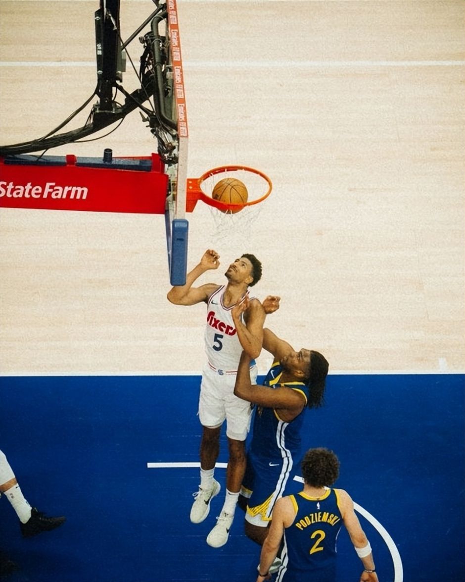 格兰姆斯并不是一名纯投手,但是他在本赛季的外线进攻效率极其稳定,三分球命中率更是达到了39.2%。只要对手在外线漏掉他,格兰姆斯便能够将球稳稳投进,而这种接球便出手的三分球命中率,更是比肩巅峰时期的汤普森。当费城三巨头在场时,对手的防守重心便会偏移到他们身上,格兰姆斯正好利用这个机会展现自己的三分球功力,为费城外线火力提供了支援。