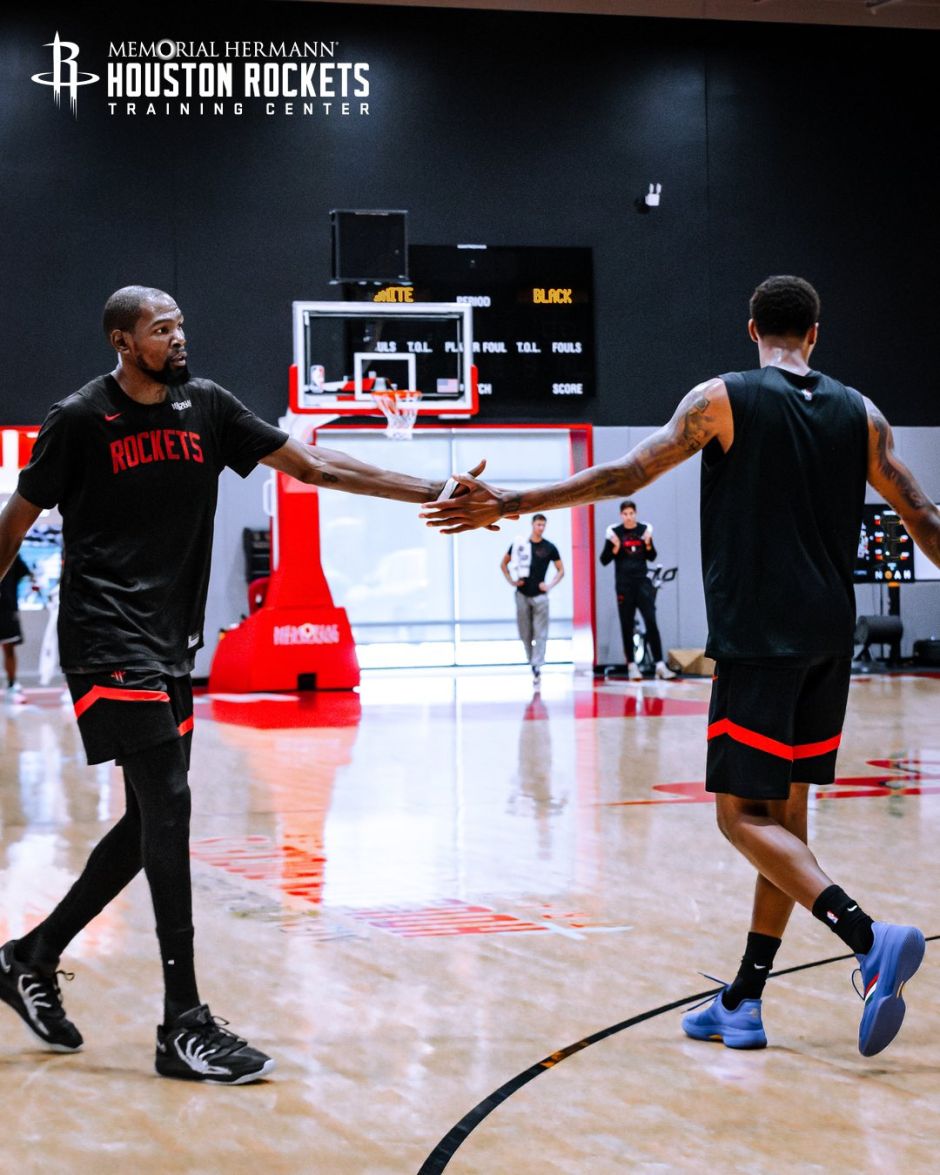 杜兰特能率领这支球队走多远?让我们拭目以待。至少在训练营的第一天,他已经带领全队苦练罚球,而这也是火箭上赛季的一大短板。数据显示,火箭上赛季的罚球命中率只有73.8%,排在联盟倒数第一。