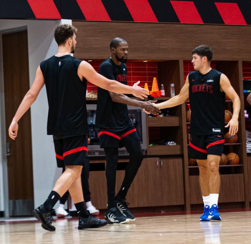 北京时间10月5日,休斯顿火箭队继续进行训练营活动,谢泼德、杜兰特、申京、阿门、小贾疑似被分在一组,因为从火箭官方晒出的训练视频中这五人有配合。