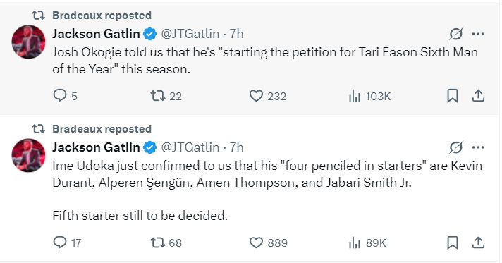 训练后约什-奥科吉也接受了火箭队记加特林的采访,奥科吉表示他新赛季的目标是冲击最佳第六人。