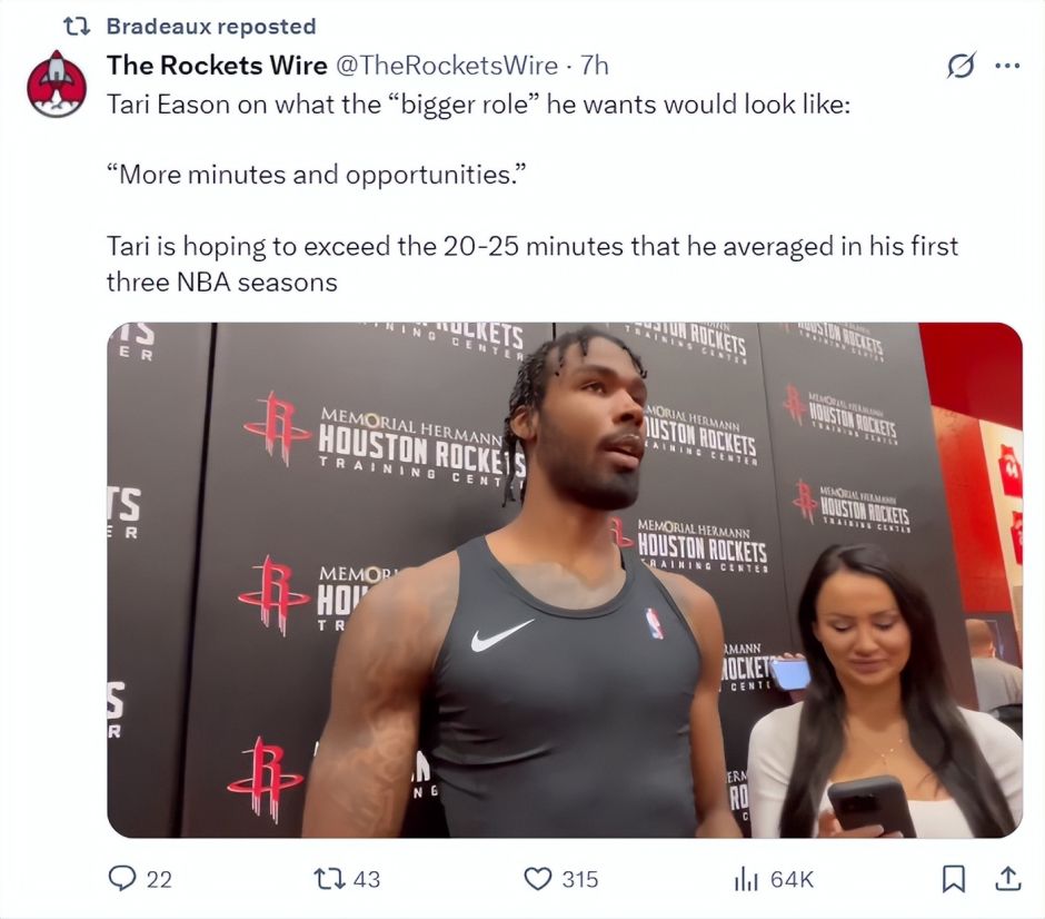 伊森在训练后也接受了采访,他表示希望在这个赛季获得更大的角色与更多的登场时间:我之前三个赛季场均就20-25分钟左右,新赛季我希望自己可以承担更大的角色,场均登场时间可以超过此前三个赛季的平均时间 。