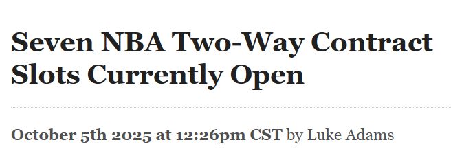 即便已填满3个双向合同名额的球队,在当前至常规赛揭幕战期间也可能调整阵容,这会导致部分现有双向合同球员被裁,从而为仍有空缺名额的球队创造更多潜在引援目标。