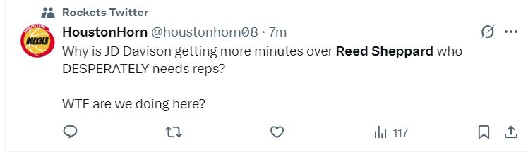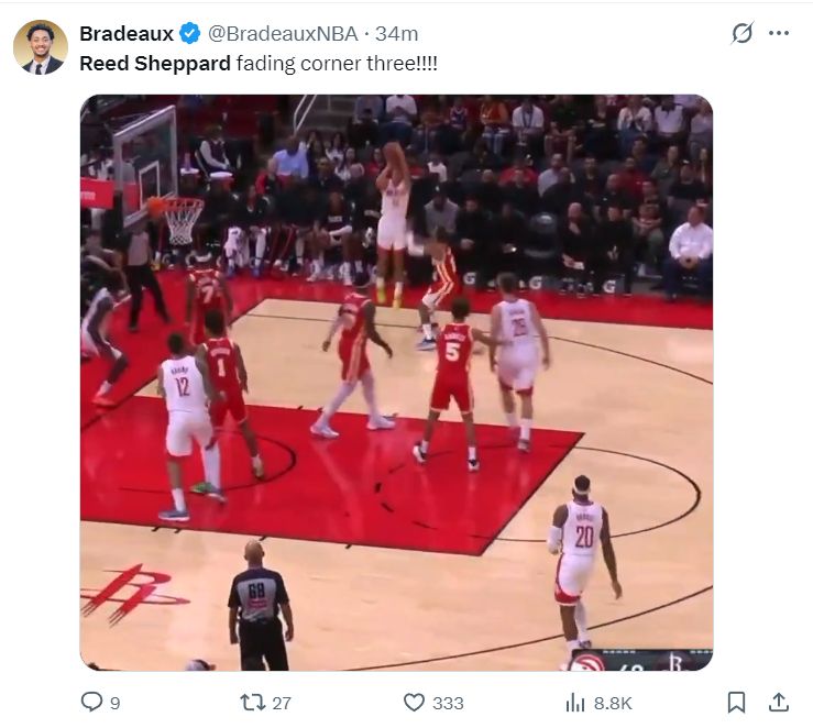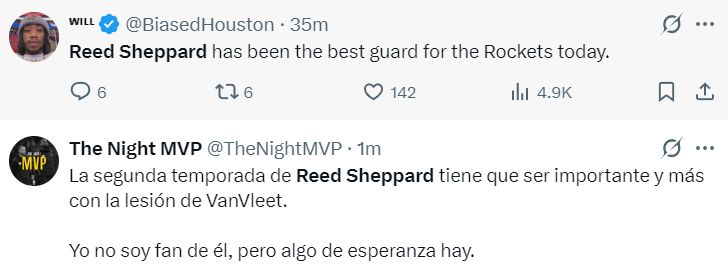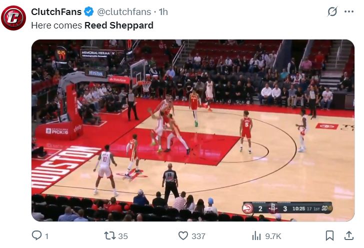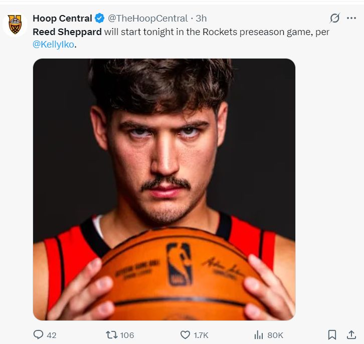在赛前几小时,火箭队记凯利-伊科透露里德-谢泼德将在季前赛第一场中先发,他在今夏的两场夏季联赛中,场均贡献23分5.5篮板2.5助攻4抢断,命中率为36.4%、三分命中率31.8%。