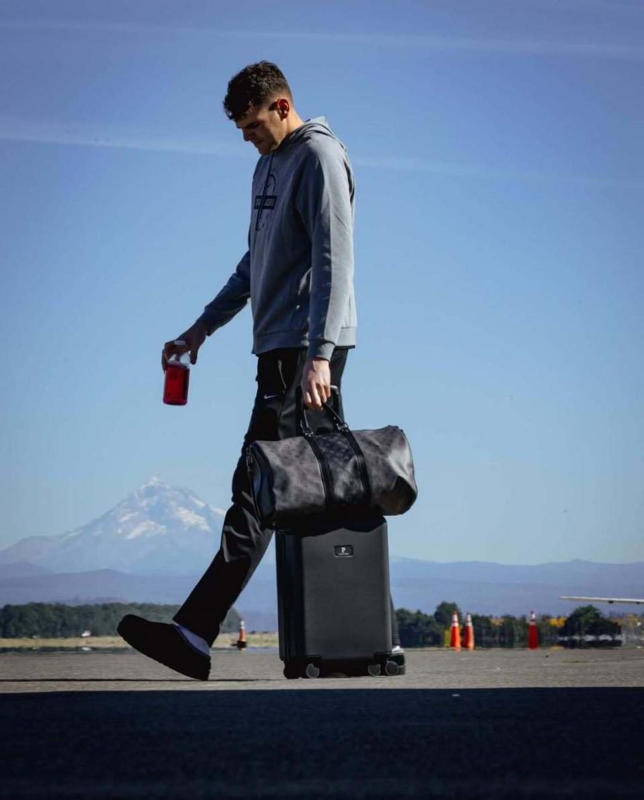 北京时间10月8日,开拓者完成今日训练后前往机场,准备开启新赛季的第一次客场之旅。他们的季前赛首个对手是勇士队,杨瀚森也出现在镜头中,他开心地秀着自己的新秀装备——粉色小书包,显然对NBA生涯首场季前赛也是充满期待。