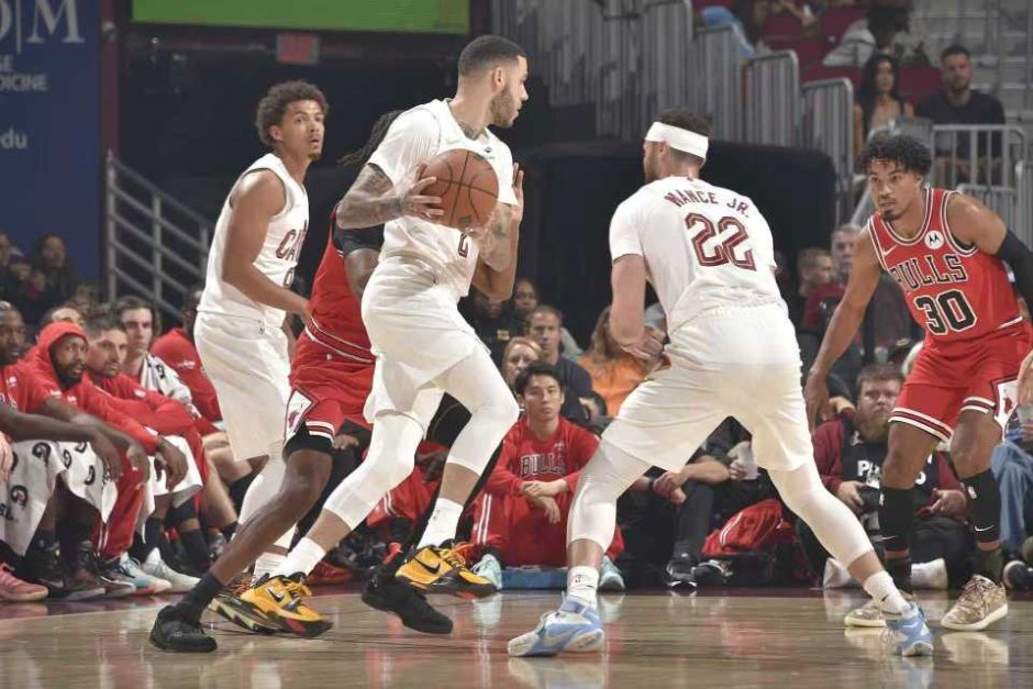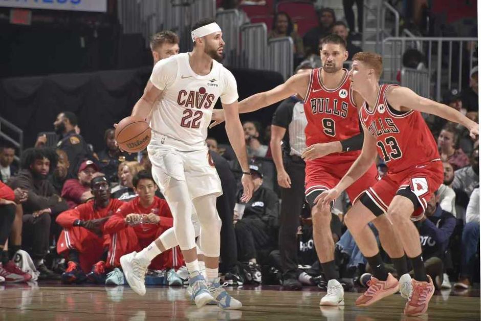 骑士休赛期引进球哥、海斯与托马斯-布莱恩特,公牛引进奥科罗,续约吉迪与主帅多诺万。本场骑士缺少加兰、斯特鲁斯,公牛缺少科比-怀特。首节比赛骑士开局率先取得11-3领先优势,并在之后扩大17-6领先,且首节中段维持22-11领先优势。公牛顽强反扑打出11-4攻势追到差4分,骑士回敬一波11-4攻势,首节比赛结束骑士37-26领先公牛11分。