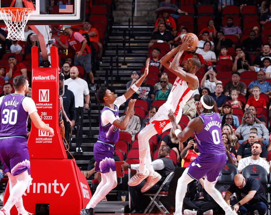 北京时间10月9日,NBA季前赛,火箭VS爵士。这场比赛杜兰特只打了三节就拿到20分,第三节单节4中4拿到12分太爆炸,KD这位37岁的得分手仍然是联盟前十的超巨,相信火箭跟他谈提前续约会成功的,毕竟他是火箭最需要的关键时刻得分手。