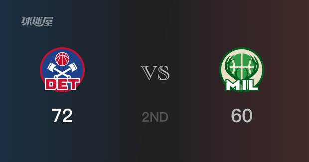 半场结束,活塞以72-60领先雄鹿12分,第三节再战。