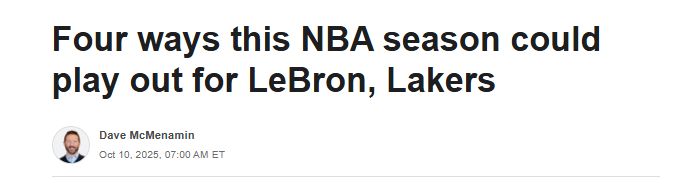 北京时间10月10日,ESPN撰文解析詹姆斯的未来选择,摆在这位湖人巨星面前的路有四条,詹姆斯究竟会选择哪一条呢?