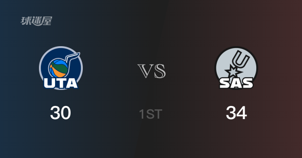 首节结束,马刺以34-30领先爵士4分。