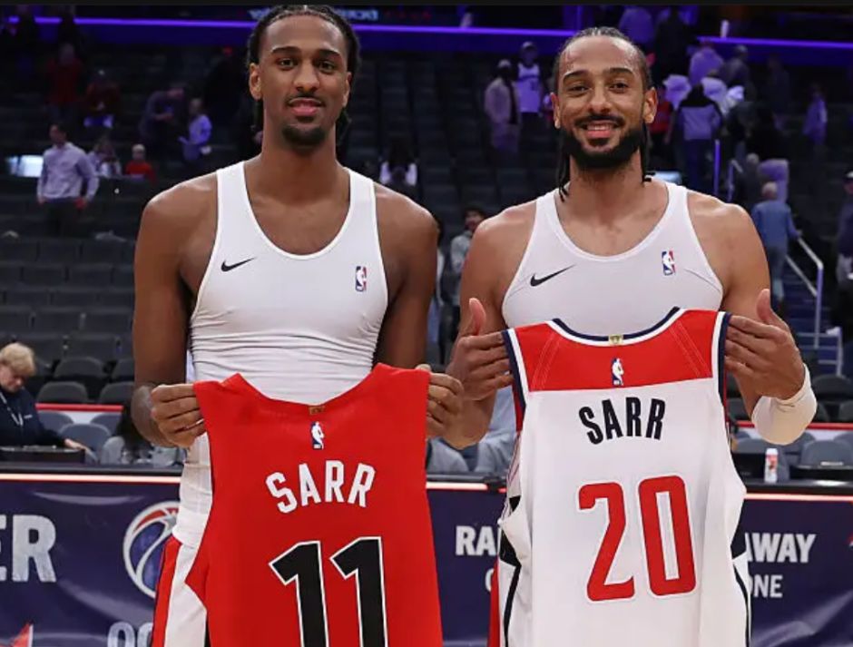 本场比赛,哥哥奥利维尔4投1中,唯一一个运动战进球就是这个空接,全场贡献4分4篮板3盖帽。弟弟阿莱克斯-萨尔是2024年榜眼秀,本场比赛得到12分8篮板1抢断2盖帽。萨尔兄弟俩在赛后互换了球衣。这个夜晚,身为落选秀的哥哥击败了弟弟。