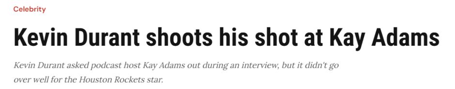 凯文-杜兰特曾试图向凯-亚当斯发出邀约,可惜未能成功。