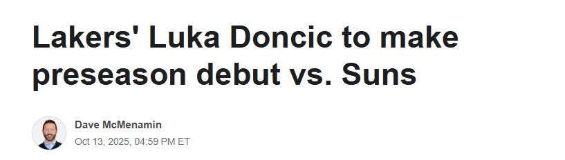 东契奇将出战太阳!斯马特也将迎湖人首秀 雷迪克尚未确定揭幕战首发