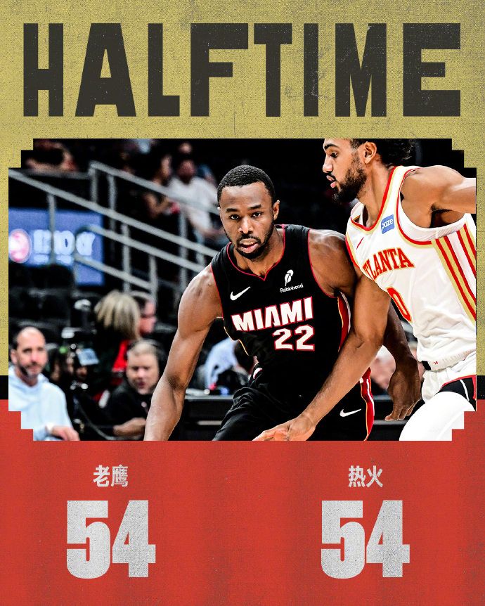 次节比赛,双方攻防局势发生改变,热火完成本场首次单节得分30+,且限制老鹰单节得分不足20分。热火开局24-38落后14分差距,热火打出一波14-0攻势追到38-38。双方随后交替领先缠斗,热火第二节打出30-19净胜11分攻势,上半场比赛结束热火追到54-54持平老鹰。