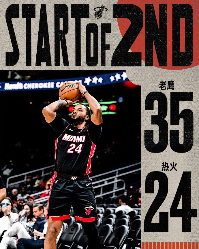热火在前四场季前赛,连续输给魔术、雄鹿、马刺与魔术一胜难求,老鹰上一场122-116险胜灰熊。本场热火缺少希罗、约维奇与罗齐尔,老鹰缺少特雷-杨、里萨谢、波尔津吉斯、奥孔古等主力。热火面对轮休主力阵容的老鹰对决,他们首节被老鹰的出色进攻压制,首节开局双方维持12-12,老鹰很快打出13-2攻势取得两位数领先优势。热火随后继续被压制,首节比赛结束热火24-35落后老鹰11分差距。