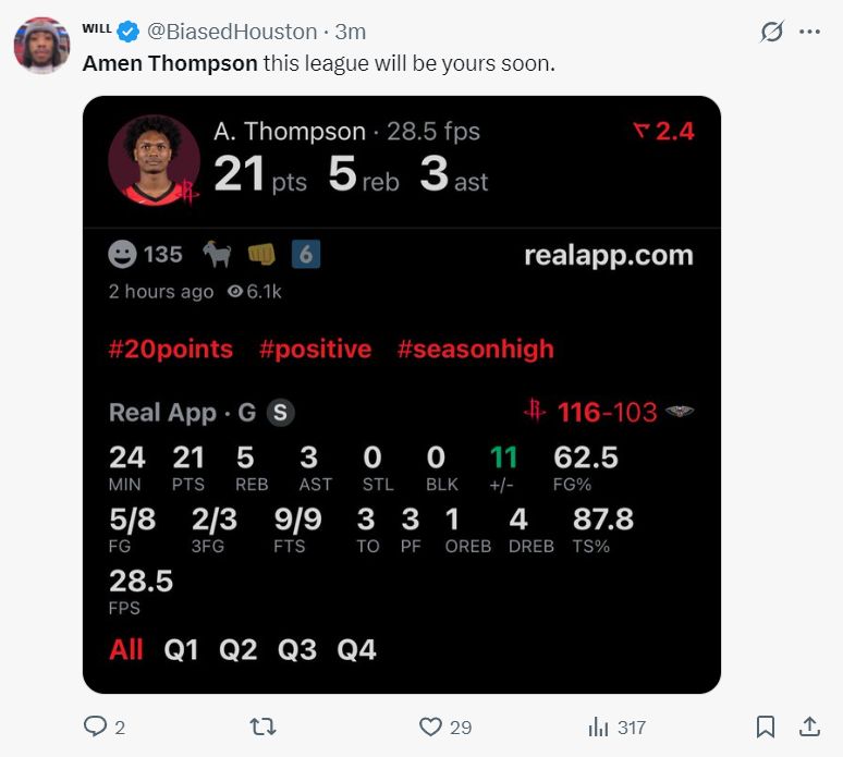 休媒BiasedHouston晒出阿门的数据写道:再过不久他就可以统治联盟了。