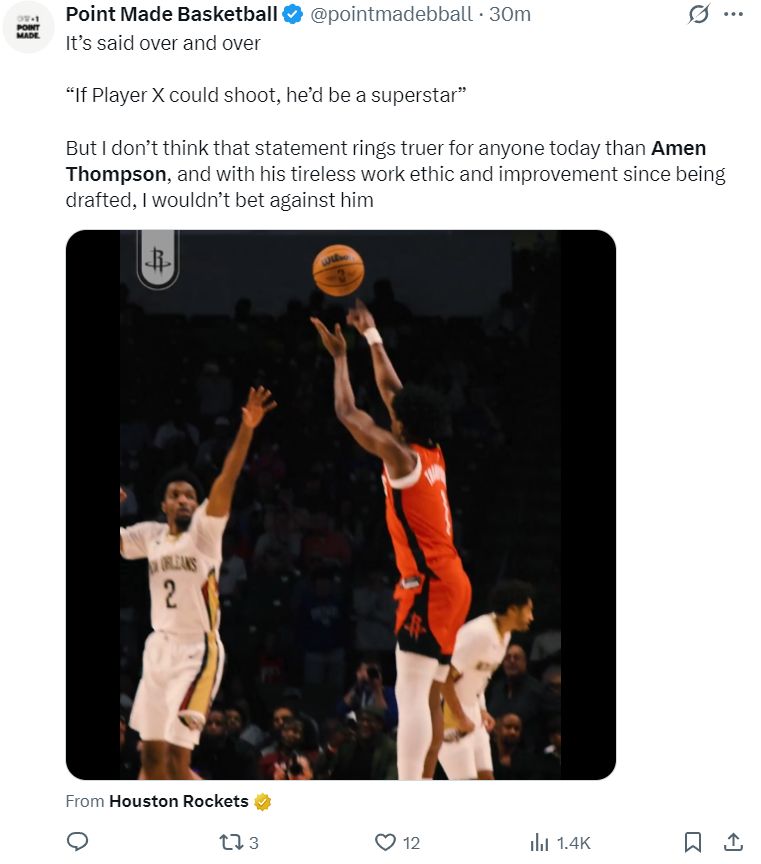 美媒PMB:我一直都在说,如果阿门可以练出投篮那么他会成为联盟的超级巨星,他不懈的努力令人动容,自他加盟火箭队以来就在不断地进步,我觉得阿门会成功的。