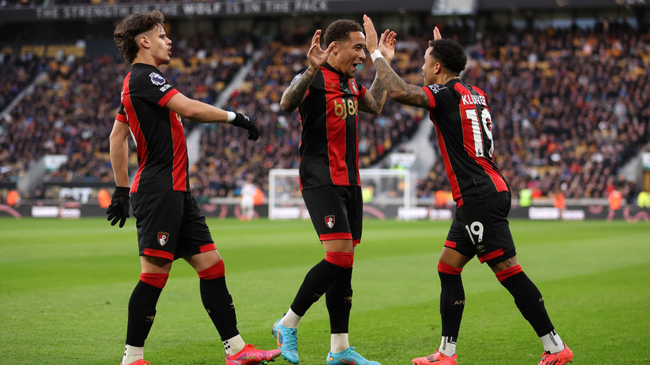 伯恩茅斯近期的战术打法以激进的高位逼抢和创新的短角球战术为核心,兼顾攻防转换效率。高位逼抢战术上球队采用人盯人逼抢方式,在对手半场高位抢夺球权,抢得后快速转化为进攻的效率位居英超前列。这种战术以边路突破制造空间,主要从左路发起进攻,用快速传递和跑位撕破防线。球队在进攻时采用高压逼抢迫使对手失误,防守阶段保持高位防守状态,并以快速反击和精准传球实现攻防转换。