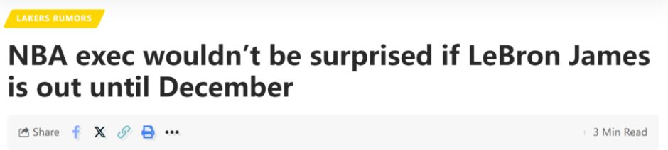 “坐骨神经痛非常、非常痛苦,”该高管说道,“而且勒布朗的身体恢复速度已不如从前。若他10月或11月都无法出战,我不会感到惊讶。湖人队必须谨慎对待这次伤病,我认为他们也会采取极为保守的态度。”