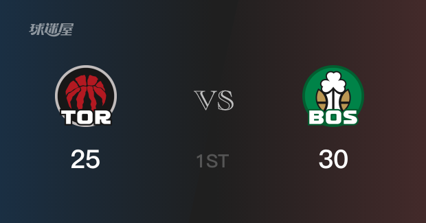 首节数据,凯尔特人以30-25领先猛龙5分。