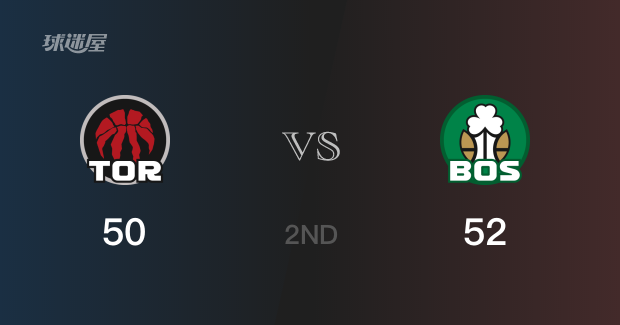 半场结束,凯尔特人以52-50领先猛龙2分,第三节再战。