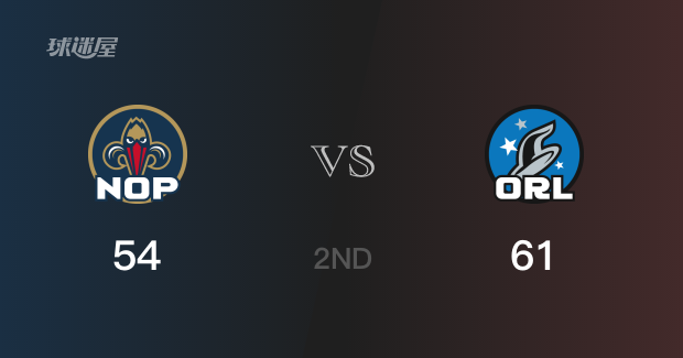 半场比分,魔术以61-54领先鹈鹕7分。