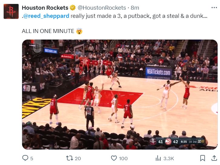 北京时间10月17日,NBA季前赛,火箭击败老鹰。这场比赛足以说明有足够的球权、战术地位谢泼德依旧可以成为一支球队的核心控卫,因为他也有着顶级的传球视眼、运动能力、投射天赋,谢泼德可以消除很多人的质疑了,全场比赛29+6+6+4+3。