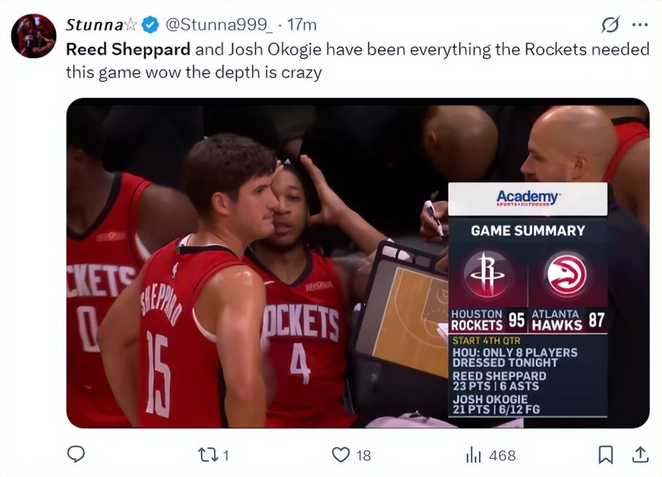 休媒:火箭的阵容深度实在是令人惊叹。