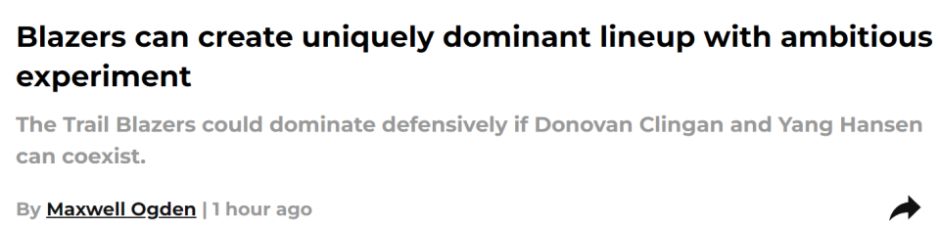尽管两人的个人能力颇具吸引力,但多数人认为,克林根与瀚森最终会为争夺出场时间展开竞争。不过,也存在另一种可能:两人共同搭档前场,为开拓者队打造一套具备绝对统治力的阵容。