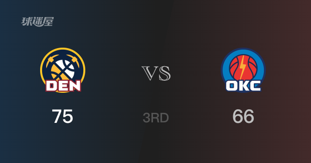 三节比分,掘金以75-66领先雷霆9分,末节再战。