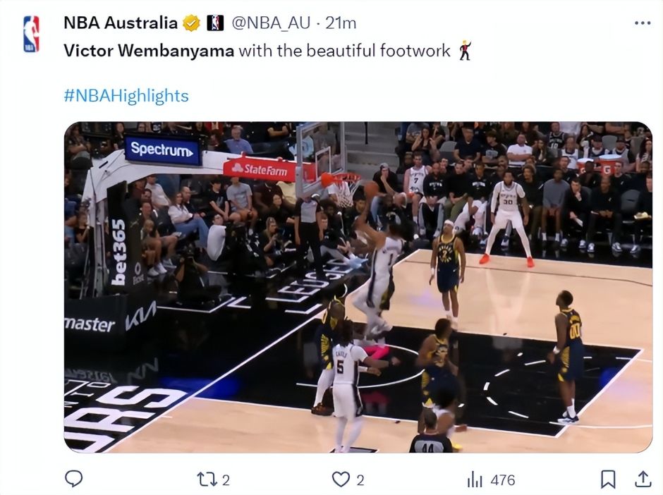 文班亚马此役面对步行者的内线群打得非常轻松,以赛亚-杰克逊、奥比-托平、西亚卡姆、怀斯曼、杰-胡夫,这些球员轮番单防文班亚马都防不了。