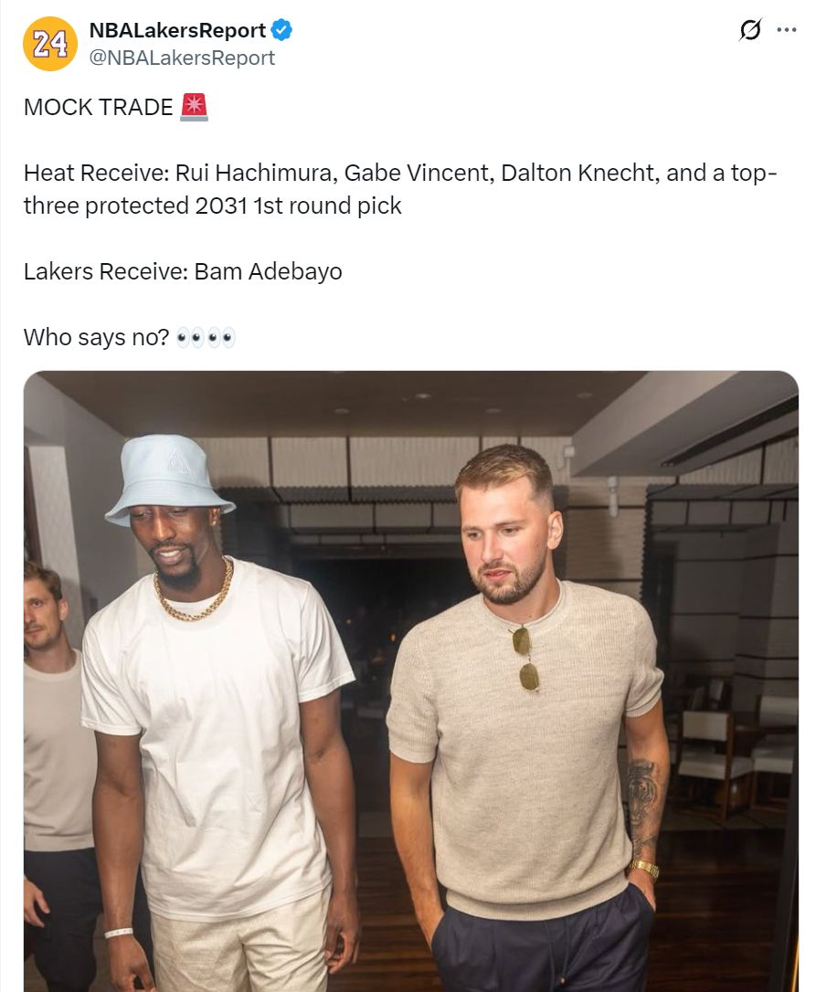 湖人媒体NBA Lakers Report模拟了一套交易阿德巴约的方案,这个方案是4换1,湖人送出八寸垒、克内克特、文森特、2031年首轮签。这个方案说实话非常寒酸,如果黄蜂、马刺要抢热巴,湖人根本对应不上筹码。