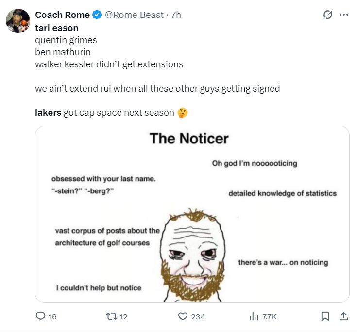 湖人媒体Coach Rome写道,今夏马瑟林、凯斯勒、伊森、格兰姆斯等人都未能与球队达成提前续约,火箭给了很多人合同可唯独没有给伊森合同,明年夏天湖人有足够的薪金空间。