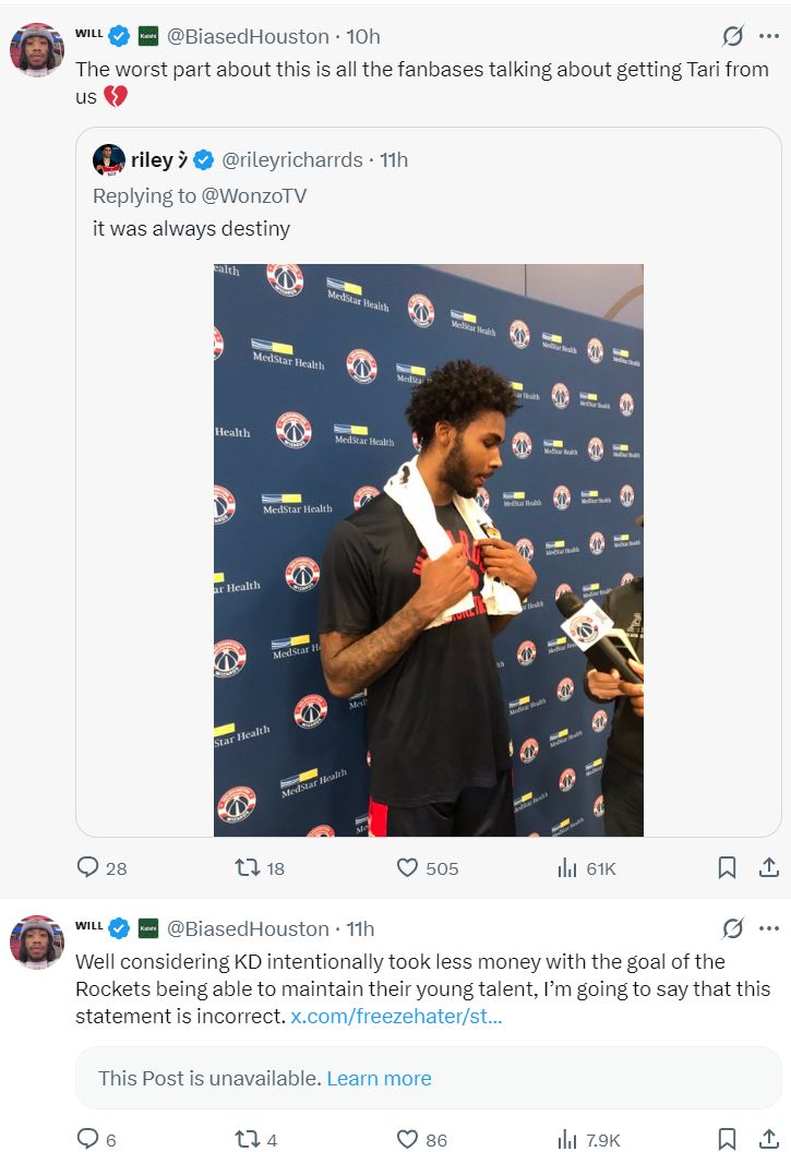 相信所有人都知道了,火箭与塔里-伊森的提前续约谈判失败了,原来KD迟迟未能续约不是KD的问题而是火箭管理层无法敲定伊森的合同,KD一早就已经决定降薪了,火箭在伊森续约这个事宜上显得诚意不足,2500万的空间应该是没有给足的。