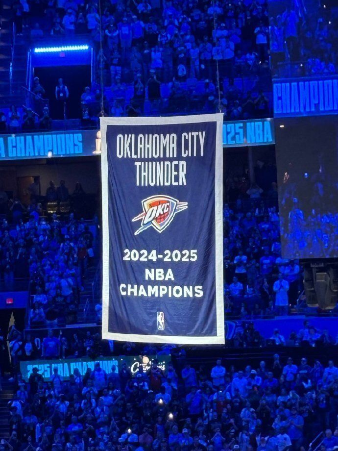 在揭幕战的赛前,萧华为雷霆老板和主教练颁发总冠军戒指,雷霆众将在亚历山大引领下,依次登场领取总冠军戒指,因伤缺席揭幕战的杰伦-威廉姆斯也现身领取总冠军戒指。