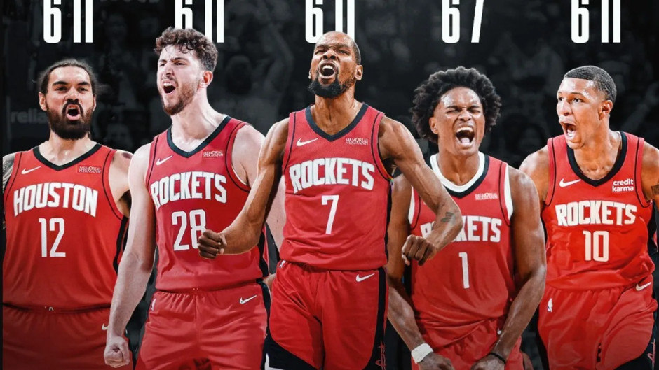 火箭本场的首发五人组为:阿门、杜兰特、小贾巴里、申京以及亚当斯。
