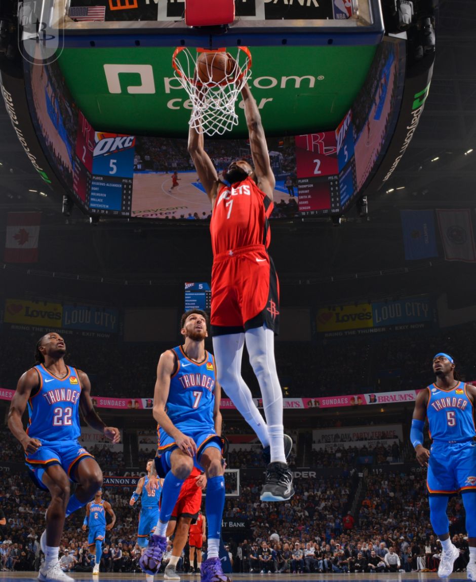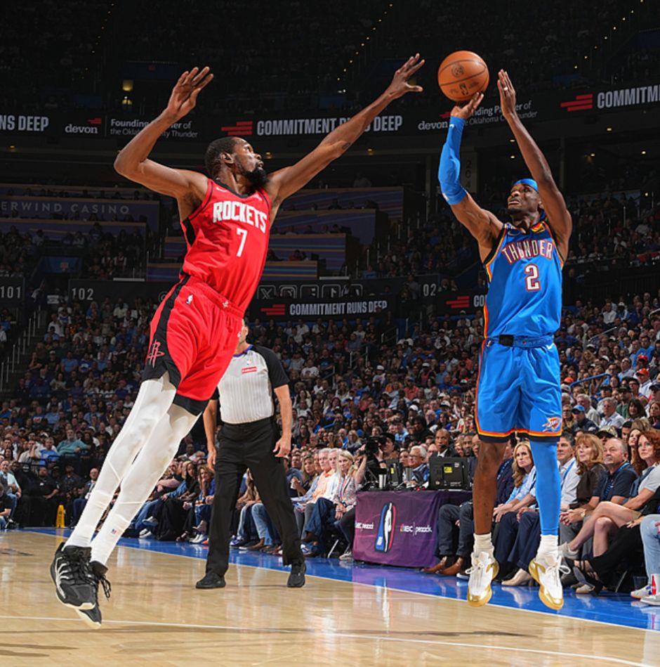 凯文-杜兰特战旧主,KD直言对雷霆的颁奖典礼没有什么感觉,雷霆主场球迷也狂嘘KD,开场雷霆防守KD的策略是不让他接球,KD在一次反击中暴扣拿到火箭生涯的首分,KD一接球全场就嘘他,可KD还是单吃多尔特成功。KD上罚球线又被嘘,杜兰特首节打满12分钟,7中3拿到8分1篮板。