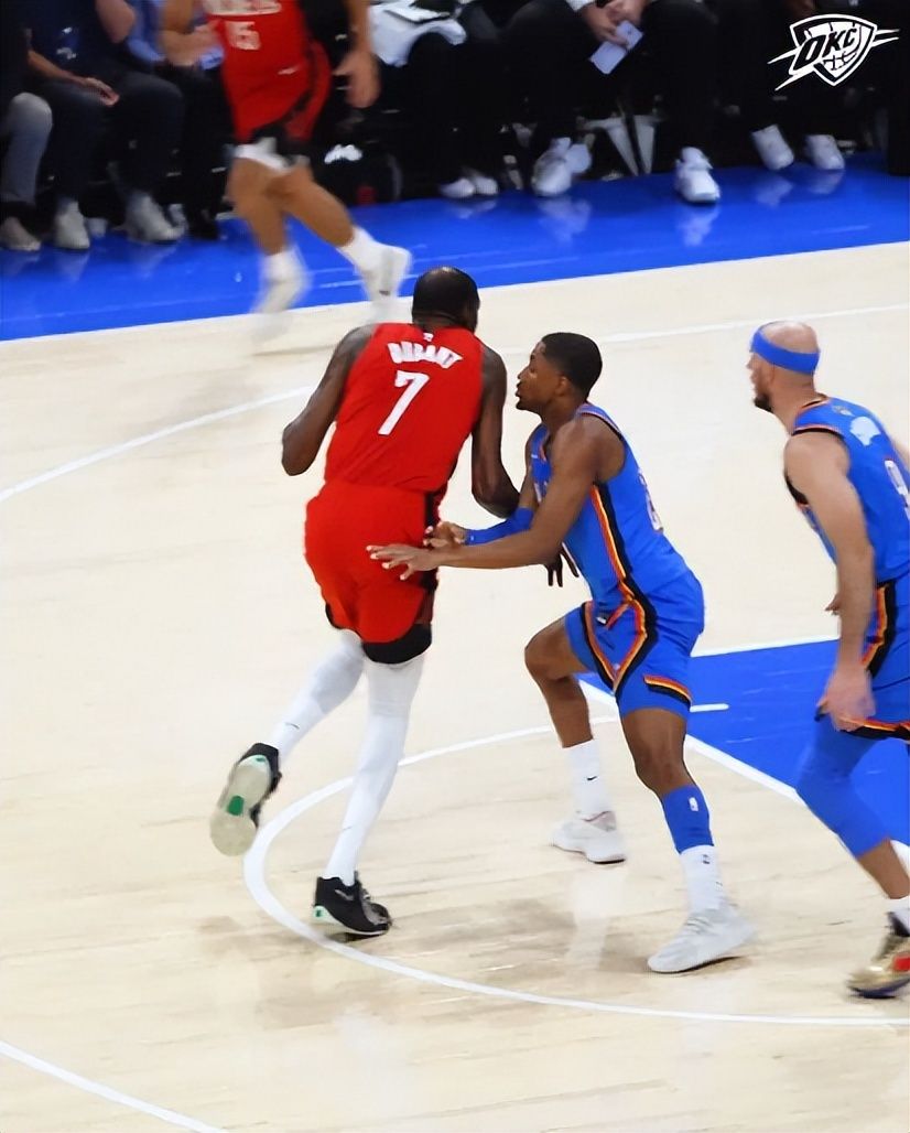 SGA绝杀不中,杜兰特保护了后场篮板,这时候火箭已经没有暂停了,杜兰特比了一个暂停的手势,杜兰特本该吃一个技术犯规,但裁判没有给,雷霆主帅戴姆波特十分愤怒冲入场内,但裁判说比赛已经结束了。