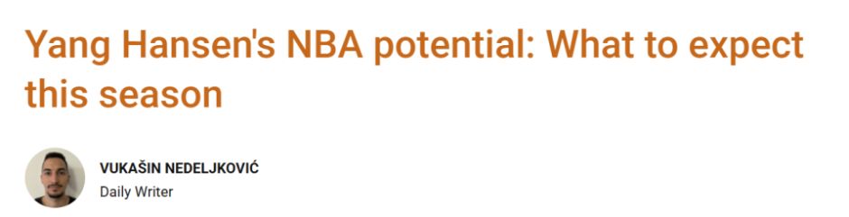 北京时间10月23日,杨瀚森已经通过夏联和季前赛的考验,即将迎来常规赛的挑战。外媒Basketnews更新了杨瀚森的球探报告,全面解析这位中国内线。总体来说,该媒体认为杨瀚森不会成为水货。以下是Basketnews的报告全文——