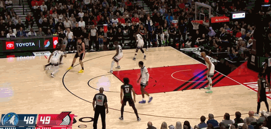 易边再战,爱德华兹连得5分,克林根补篮命中,夏普中投得分,阿夫迪亚打成2+1。克林根也出现防守三秒违例。香农补篮得分,夏普三分命中,戈贝尔内线得分,格兰特三分也中,兰德尔篮下得分,格兰特突破扣篮,爱德华兹又连得4分。康利三分命中,格兰特突破打成2+1,爱德华兹扣篮。夏普三分再中,韦斯利上篮得分,开拓者领先7分。香农、克林根互飙三分,三节战罢,开拓者95-88领先森林狼。