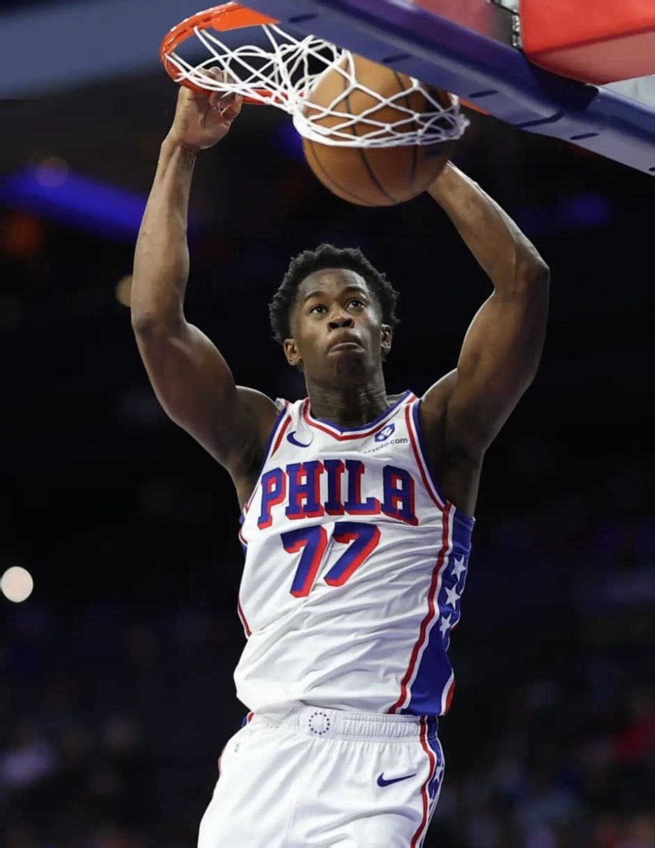埃奇库姆能够在首轮第三顺位被费城选中,与他出色的身体天赋有关。埃奇库姆的持球冲击力非常好,即便面对对手的封堵,也能够创造机会将球打进,并且具备稳定的三分球投射能力,俨然就是又一个马克西。只要给他足够的表现机会,埃奇库姆就能够打出稳定的表现,而这是他在首场比赛便打出高效数据的原因。