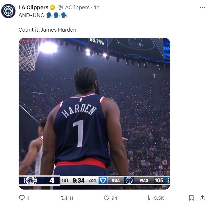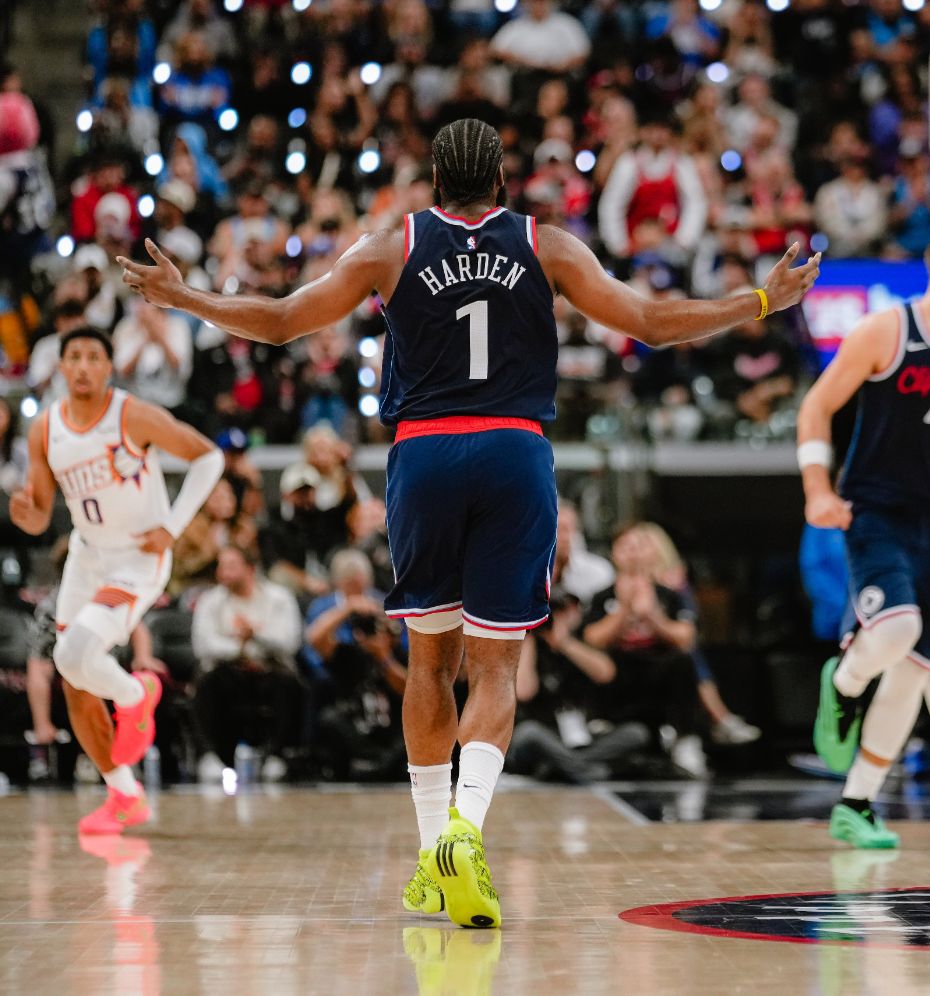 快船的第一步就是找重点人詹姆斯-哈登,哈登持球突破2+1,虽然连续命中两个三分球,首节哈登9分钟里4中4+三分2中2+罚球4中4拿到14分2篮板1助攻。