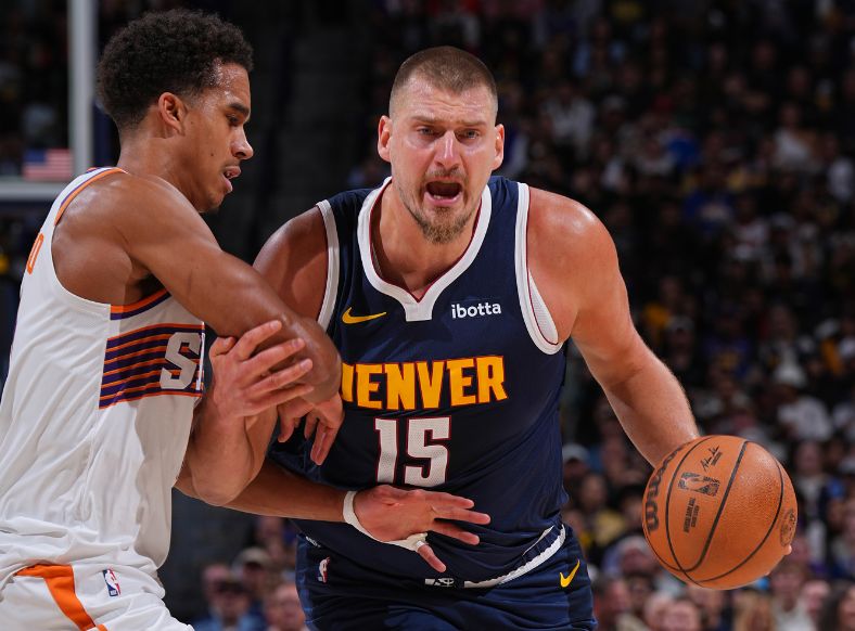 中场休息回来,布克率先三分命中,掘金连得4分,太阳连追4分。掘金一波6-0攻势扩大20分优势,布克与狄龙冲击内线打出13-2攻势追分,掘金回敬一波11-0攻势再度取得20分优势。太阳内外开花一波7-0攻势,掘金连得4分约基奇达成三双,邓恩反篮命中,约基奇两罚全中,三节结束掘金100-83领先太阳。前三节比赛,掘金罚球次数32-17多出太阳15次,约基奇12+12+14连续两场三双,且引领掘金首发五虎全部得分上双,布克13中8得到27分5助攻7失误,引领太阳3人得分上双。