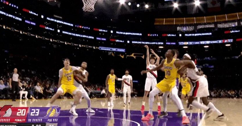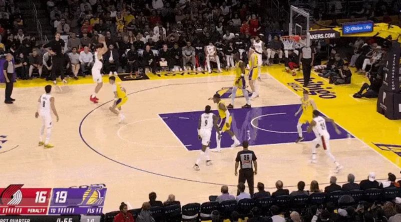 还剩3分56秒杨瀚森第二次弧顶空位继续打铁,看得出来湖人的策略就是放他投篮,毕竟两队都是背靠背第二场。