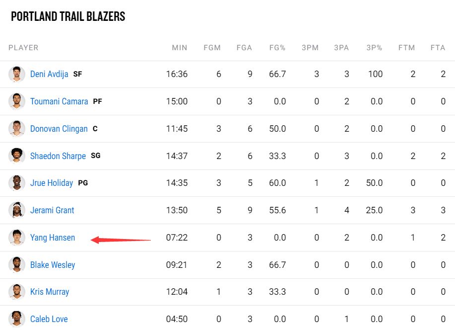 第三节杨瀚森没有登场0分钟,克林根在第三节打了6分钟,其余的6人斯普利特都是用他的小阵容,但这个小阵容的效果的确不错,开拓者单节净胜6分继续拉开分差。