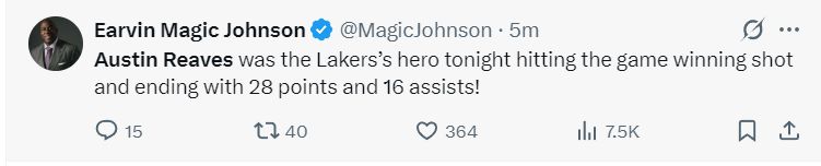 赛后魔术师评价这场比赛:里夫斯是这场比赛的英雄,他不仅拿到28分16助攻还命中了绝杀一球。