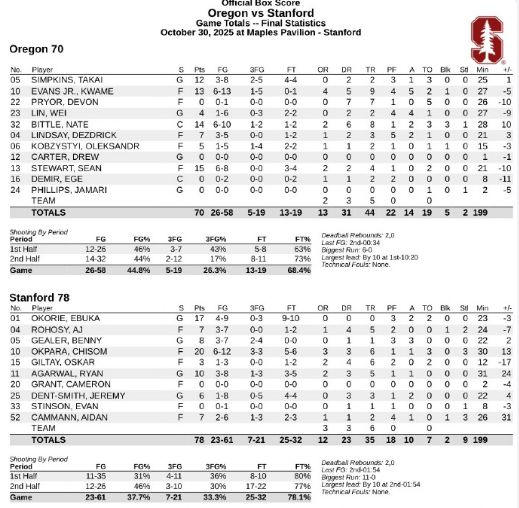 林葳还有2篮板4助攻表现,却还送出1次失误与4次犯规,在场正负值-9表现不理想,所在的俄勒冈大学也是遗憾70-78惜败斯坦福大学。
