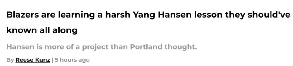 北京时间11月3日,开拓者队记Reese Kunz撰文谈到杨瀚森被下放到发展联盟球队训练一事,他指出,对于开拓者而言,培养杨瀚森的任务比预想的更加艰巨。以下是Kunz的报道——