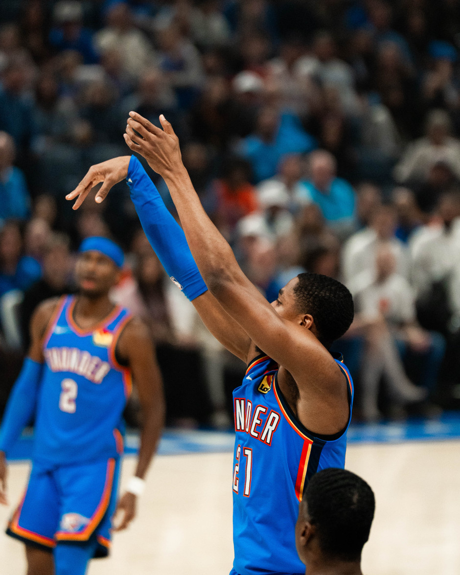 雷霆上一场客场作战,以126-107大胜快船,核心亚历山大仅出战29分钟就高效砍下30分12助攻,三分球5投4中。以赛亚·乔贡献22分,华莱士也有12分进账。杰林·威廉姆斯和多尔特本场双双复出,霍姆格伦也保持健康,这让球队的轮换阵容重回完整。本赛季雷霆场均得分高达122.6分,进攻效率稳居联盟前列。虽然杰伦·威廉姆斯、肯里奇·威廉姆斯等球员继续缺阵,但球队年轻的核心阵容在背靠背比赛中反而能发挥体能优势,快速的攻防转换和精准的外线投射是他们制胜的法宝。