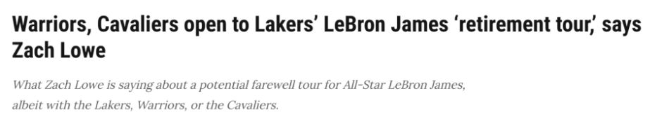 詹姆斯下赛季离开湖人?骑士勇士最新态度曝光:愿为他筹备退役巡演