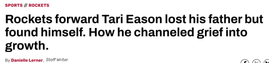 直到火箭队赛季结束,伊森才真正接纳了父亲离世这一悲剧。